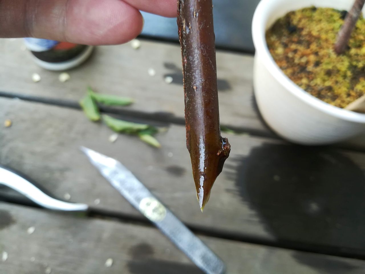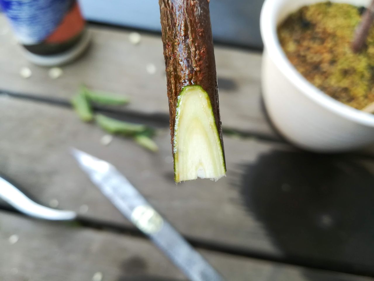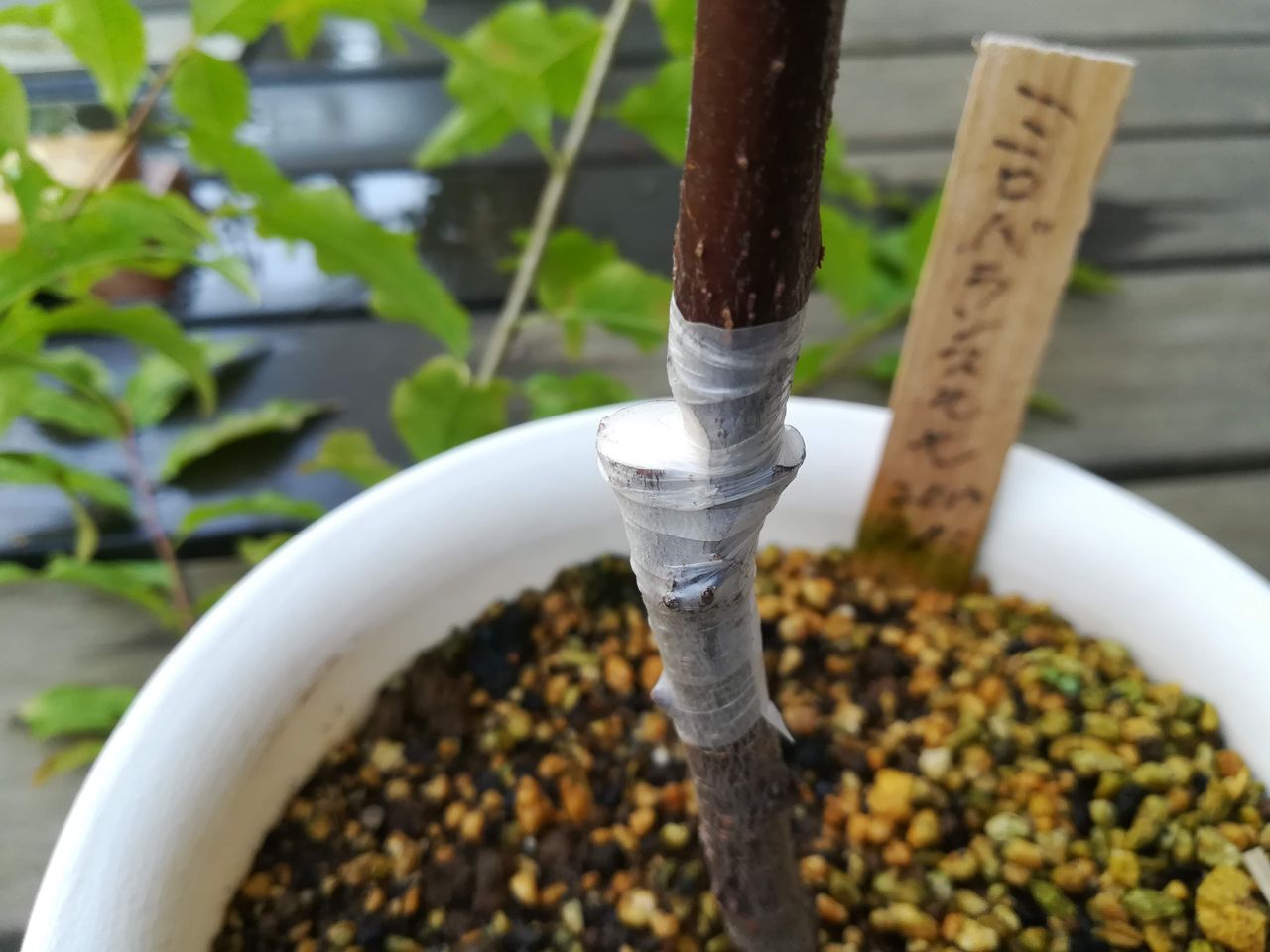 台木の薄皮のようになっている部分は癒合させるだけでなくテープを巻く際の穂木の押さえとして働くと今回初めて気づきました。