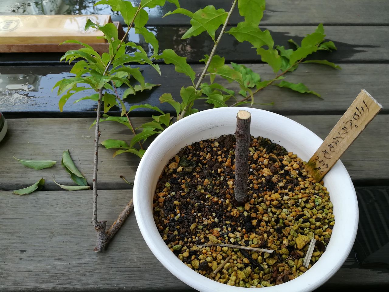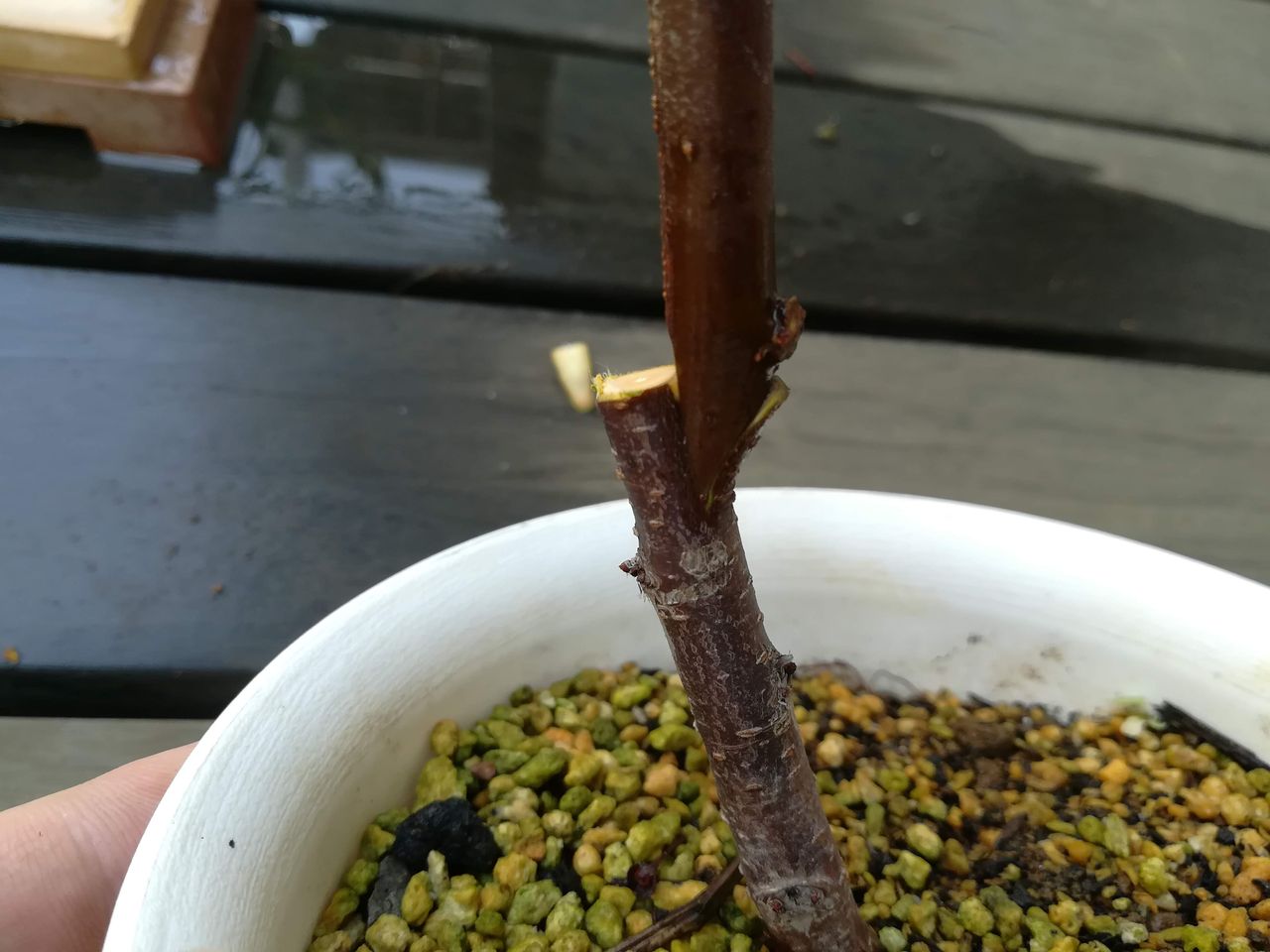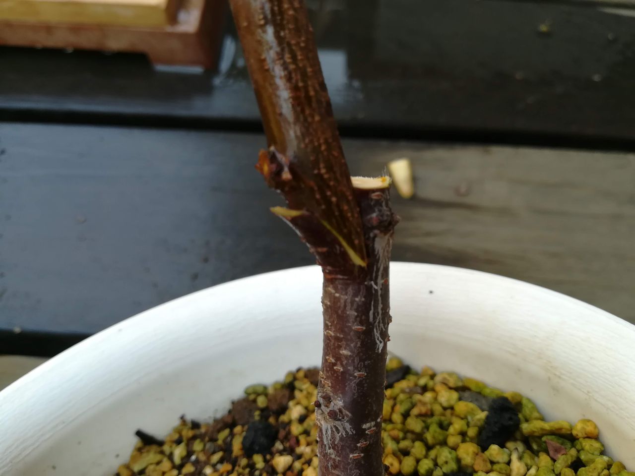 理由は、書籍などにミロバランスモモが台木として優れていて一般的に使われていると書いてあったのと、サイズ的にちょうど良かったからです。